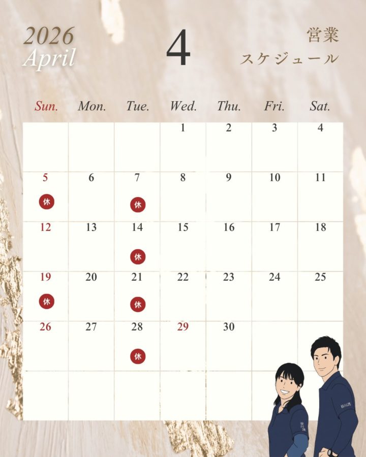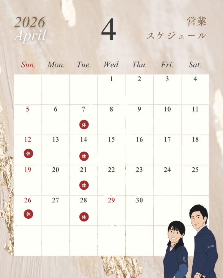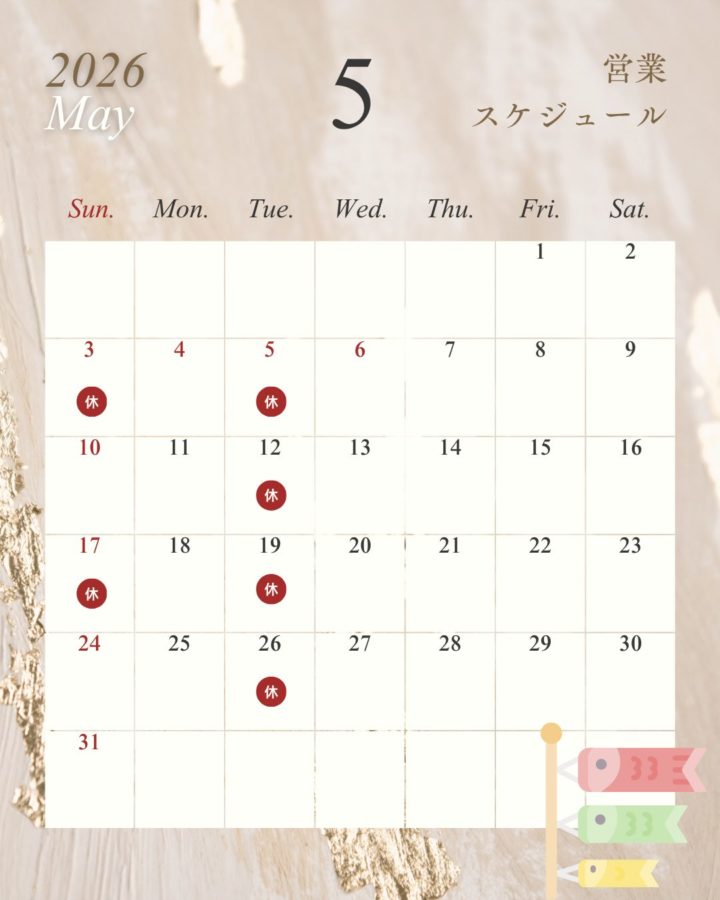 定休日 毎週火曜日 毎月 第二・第四 日曜日